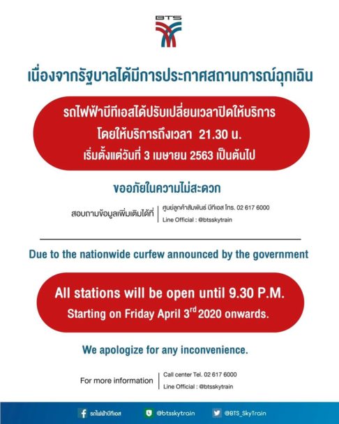 Previous: BTS, MRT & Airport Link to operate until 9:30pm starting April 3